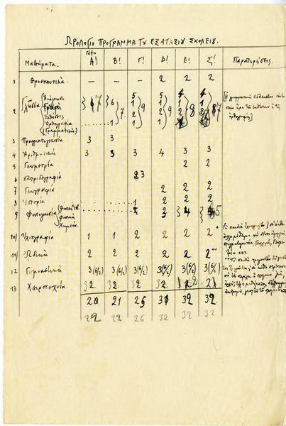 Υπόμνημα του ΕΟ για το Πρόγραμμα Δημοτικό Σχολείου, Ανωτέρου Παρθεναγωγείου και Διδασκαλείου Κοριτσιών